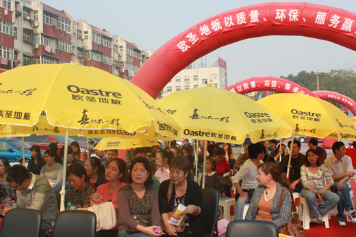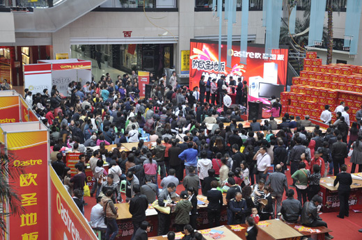 金秋十月、躍動古城“購歐圣地板抽幸運大獎”10月3日古城西安天氣一掃往日的陰霾,太陽露出了微微的笑臉,天乘人美,陜西西安“購歐圣地板,抽幸運大獎”活動在北大明宮正式拉開帷幕!當您步入大明宮,感覺進入了花的海洋指引著您進入大明宮中廳。眼前豁然一亮,歐圣活動現場映入眼簾。伴隨著輕柔的音樂、LED背景滾動著精美的圖片、專業的品牌文化展示,有序的產品陳放、如山般…