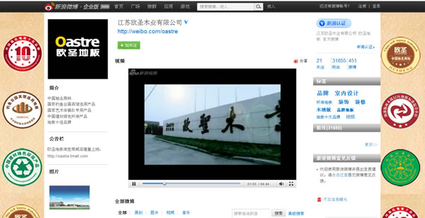 為更好的傳遞歐圣品牌與產品信息,加強同廣大消費者及用戶的溝通與互動,歐圣地板的官方微博(http://weibo.com/oastre)于2012年3月20日正式上線。今后,歐圣將借助這一官方微博平臺,更加及時地向消費者及歐圣用戶們傳遞歐圣品牌及產品方面的相關信息,包括最新的產品知識、促銷、文化活動以及裝修知識等等。同時,還會通過對裝修作品的賞析,與消費者們交流裝修知識和心得。…