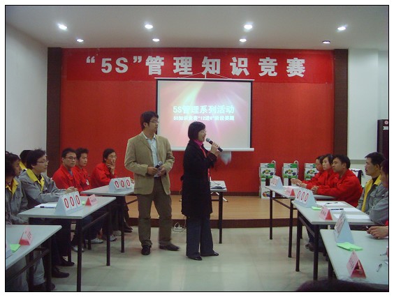11月8日下午,公司會(huì)場里笑語不斷,“歐圣后道,能說會(huì)道!”“歐圣行政,孰我必勝!”“歐圣開板,敢于叫板!”“歐圣壓板,才氣壓人!”……語出驚人的團(tuán)隊(duì)口號(hào),引起觀眾的一陣陣喝彩。沒錯(cuò),這就是公司5S知識(shí)競賽12進(jìn)6的比賽現(xiàn)場,除了豪氣沖天的宣戰(zhàn)口號(hào)外,倉庫隊(duì)的隊(duì)員們還把自己對5S管理的體會(huì)融入到開場白中:“整理整頓做得好,工作效率步步高,清掃清理堅(jiān)持做,靚麗…