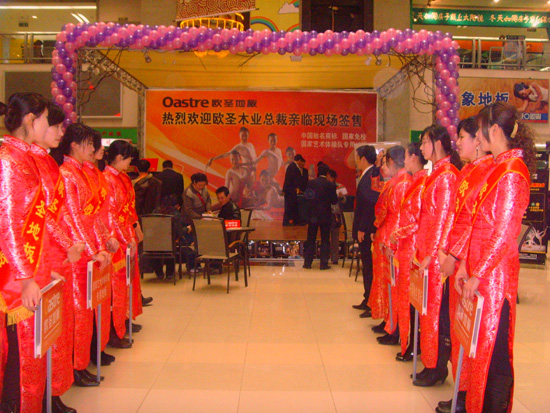 為了回饋山東濟南市民對歐圣地板的關注和喜愛,3月1日,歐圣總經理王濤攜驚喜優惠價,在濟南銀座家居市場為顧客進行現場簽售,短短2小時內,8000平方米的地板就被一搶而空,創造了市場內單日產品銷售的神話。11點,當王總在工作人員的陪同下,健步走進市場時,早已等候多時的顧客一擁而上,爭先請王總簽名。在工作人員的維持下,長長的隊伍竟一直排到了市場門口。在活動過程中,…