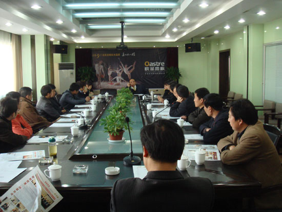 2007年11月21日上午山東省經銷商大會在山東明湖大酒店隆重召開,歐圣山東營銷中心總經理謝清武先生主持了此次大會,歐圣營銷總監黃水根先生、營銷總監助理劉長春先生應邀出席了此次會議。本次大會主要圍繞了歐圣發展前景、新的廣告畫面制作、店面形象打造等方面進行了研討,最后達到了部分問題的統一。