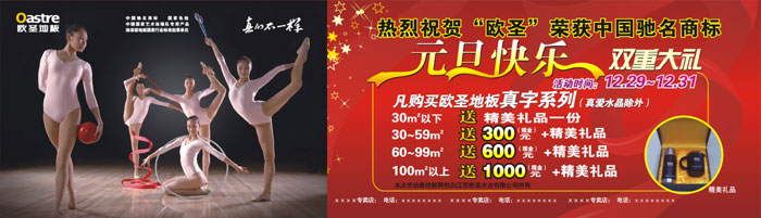 2007年是歐圣品牌之花綻放光芒,大放異彩的一年。在這一年里,歐圣步步升高,喜訊連連:2007年5月19日,與齊正維策品牌戰略合作項目正式啟動;2007年7月,被國家林業總局授予“鋼琴漆地板國家行業標準起草單位”:2007年9月,啟用金喜善形象推廣公司產品.;2007年10月19日,歐圣木業成為中國國家藝術體操隊贊助商,并在北京釣魚臺國賓館舉行了隆重的簽約儀式及品牌升級戰略發布會;…