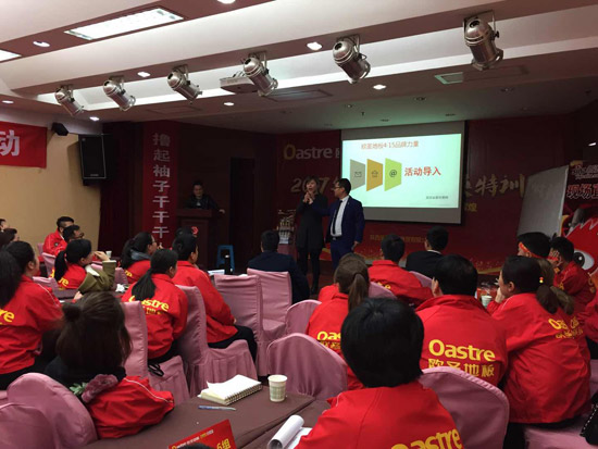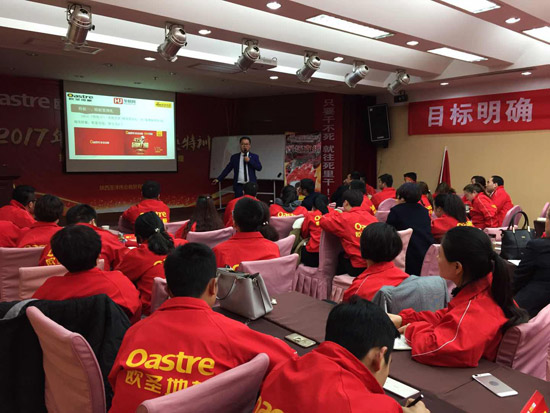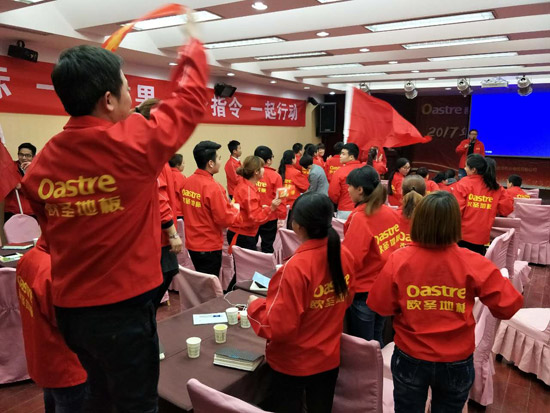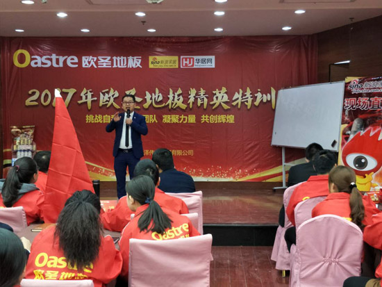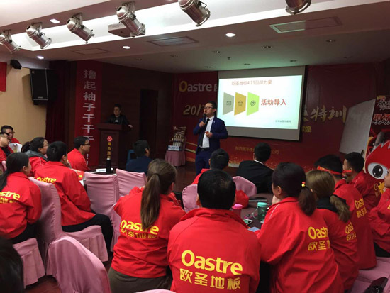 精彩的風(fēng)采展示后,歐圣地板陜西營(yíng)銷中心總經(jīng)理袁總對(duì)于本次活動(dòng)做開場(chǎng)詞,對(duì)2017歐圣地板的發(fā)展趨勢(shì)進(jìn)行分析。
