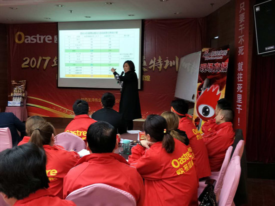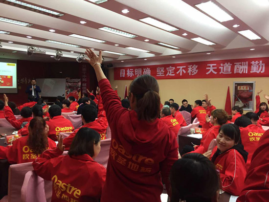 歐圣地板陜西營(yíng)銷中心副總朱奎香女士憑借著自己多年來在建材行業(yè)的銷售經(jīng)驗(yàn),以幽默詼諧的語(yǔ)言、強(qiáng)大的氣場(chǎng),讓在場(chǎng)的家人們深受感慨,將此次啟動(dòng)會(huì)演變成一場(chǎng)營(yíng)銷視覺聽覺會(huì)。