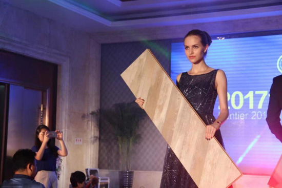 光影流轉(zhuǎn)中,帥氣靚麗模特帶著新品地板華麗亮相,在主持人的解說中,亮眼的地板花色以及精湛的工藝在模特的映襯下更是顯得華貴。精彩的走秀之后,公司領導與經(jīng)銷商代表走上舞臺,為超級地板“喝”彩,共同喝下了浸泡有超級地板的水,慶賀新品地板的發(fā)布與面市。