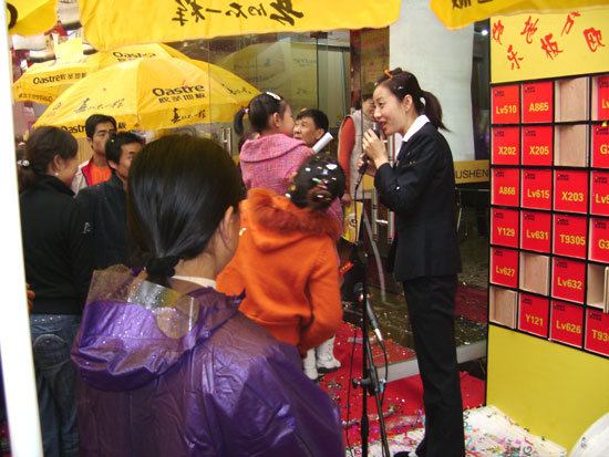 10月26日,一年一度的西安大明宮第九屆木地板門業展銷會在西安大明宮建材市場內如期舉行.展銷會上,歐圣西安大明宮區專賣店內人頭攢動,熱鬧非凡,有獎競猜活動更是把店內氣氛掀到了高潮.在歐圣導購員熱情周到的服務下,當日專賣店銷量達到幾千方,取得了可喜的成績.