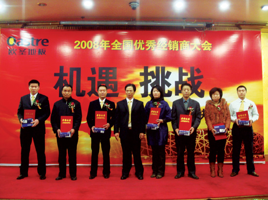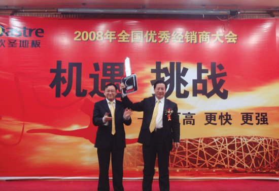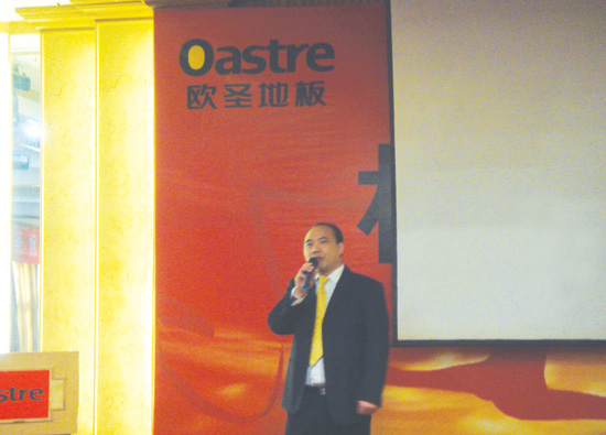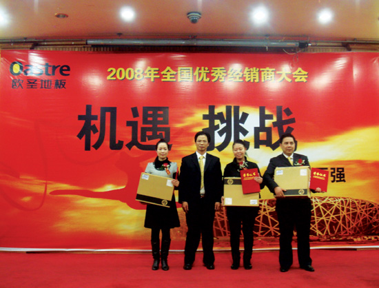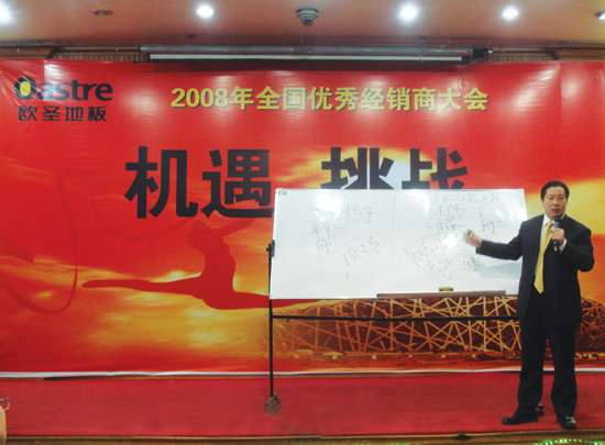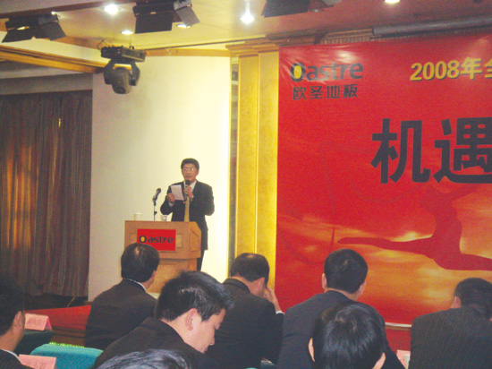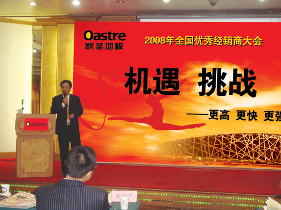 在28日第一天的會議中,歐圣總經(jīng)理王濤為大會的開幕發(fā)表了熱情洋溢的致辭,他說:歐圣在07年通過成為國家鋼琴漆地板國家行業(yè)標(biāo)準(zhǔn)起草單位、國家藝術(shù)體操隊(duì)贊助商、中國馳名商標(biāo)等成績的獲得,已經(jīng)成功的邁入了國家一線地板品牌的陣營。08年為了鞏固在行業(yè)中的地位,并取得更大的突破,歐圣將動工新建3座新廠房,新增2條德國豪邁生產(chǎn)線,屆時(shí)歐圣的產(chǎn)能將得到翻倍提高。在品牌運(yùn)作上,歐圣今年將以迎奧為主題,和國家藝術(shù)體操隊(duì)全面的合作,展開一系列的奧云營銷公關(guān)事件,進(jìn)一步體現(xiàn)歐圣的社會責(zé)任感,擴(kuò)大歐圣的知名度。并對歐圣的經(jīng)銷商們提出了把更高、更快、更強(qiáng)的奧運(yùn)精神融入到工作中的要求。他的發(fā)言使在座的經(jīng)銷商對歐圣今年的發(fā)展充滿了信心。
