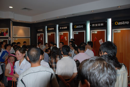 8月17日,歐圣地板陜西營銷中心與萬眾一心網站合作,在西安南大明宮店成功舉辦了歐圣地板百戶大團購活動。此次活動正當大明宮首屆地板節,由于網站的成功宣傳帶來超高的人流量,使這次活動非常成功,給沉悶的夏天帶來不少驚喜!