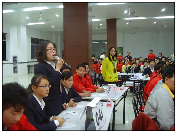 都說“人靠衣裝馬靠鞍”,參加比賽怎能不注重形象?行政隊的三名女將一身藏青色西服,聰明干練的職業形象讓人眼前一亮,沉穩大方的談吐更是顯得自信滿滿,一副志在必得的模樣。而其他代表隊也不甘落后,無不統一著裝,淺灰色的工作服更是將大家平常工作的良好狀態展現得恰到好處。看來在給評委留下的印象分上打了個平分秋色。