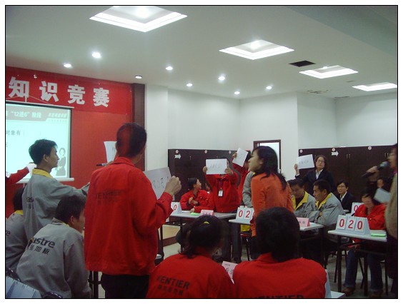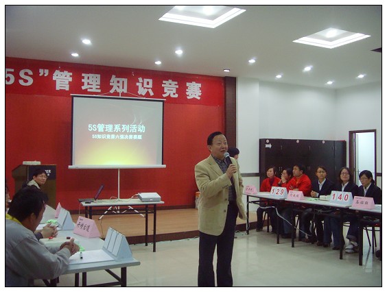 為推動“5S”工作的開展,提高全體員工的“5S”意識,公司5S管理小組舉辦了這次活動,來自生產部、行政部、物流部、外貿部各部門的12組成員共36人參加了此次競賽,5名5S推進委員會委員擔任評委,各部門員工代表到場觀摩助陣。現場氣氛熱烈,吶喊助威聲此起彼伏,一浪高過一浪。經過選擇題、必答題和搶答題三輪的激烈角逐,最后由來自行政和后道開槽的2個代表隊躋身決賽。那么,讓我們趕緊一同體驗一下比賽現場吧——