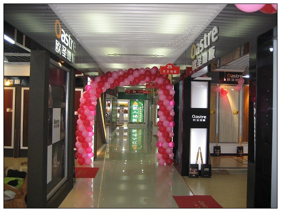 大連歐圣營銷中心整體店面設計新穎、大方、簡潔,分為實木復合地板區(qū)和強化地板區(qū),店內設施配備齊全、產品上樣氣魄宏大、樣板包裝精美、陳列時尚合理、花色品種齊全、宣傳畫冊到位、具有強烈的視覺沖擊效果;加上真光幻影和真映高貴系列兩款亮面地板的大幅讓利,在開業(yè)的當天吸引了大量的市民前來參觀和選購。