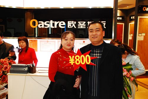 每個過道里的客流量比平常更體現出節日的氣氛,每個店面都經過特別的裝扮。在我們精心安排下,上午接待了從網上了解到歐圣地板的所有網友及到本店的所有客戶,專業導購員對大家做了地板知識、品牌及系列的詳細講解。下午兩點,團購活動正式開始,由網站負責人宣布了活動整個流程(客戶選擇自己喜歡的系列花色砍價簽單抽獎)。隨著客戶逐漸增多,砍價簽單,此時,整個活動氣氛達到了高潮,不多久,我們的簽單量就達幾千平方,熱鬧非凡的活動場面充分體現了歐圣品牌在西安消費者心目中的影響力。最后進行了抽獎環節,氣氛更是激烈,大家都滿懷希望能在買到理想產品的同時還能得到獎品,歐圣地板陜西營銷中心沒有辜負大家的希望,使大家滿載而歸;顒映掷m到傍晚時分,店內人流依舊絡繹不絕,我們導購依舊熱情接待每一位進店客戶,并對其進行詳細講解。