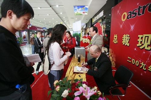 2009年5月1日,為回報銀川消費者九年的厚愛,江蘇歐圣木業有限公司在銀川月星家具廣場舉行了主題為“廠商聯合讓利 總裁現場簽售”大型促銷活動,現場氣氛火爆,驚喜不斷,僅當天銷量就突破15000多平方。在銀川,這是哪家地板企業包括國際國內名企都未曾有過的業績,而如今,歐圣地板得以載入銀川地板促銷活動史冊。