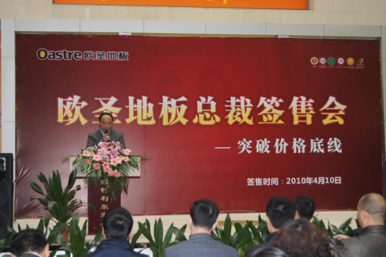 快訊:4月10日,歐圣地板陜西營銷中心在西安紅星美凱龍舉行了“突破價(jià)格底線”簽售活動(dòng),公司黃總親臨現(xiàn)場簽售,活動(dòng)現(xiàn)場火爆的人氣及顧客踴的躍簽單購買為這次活動(dòng)劃下了圓滿的句號(hào)。