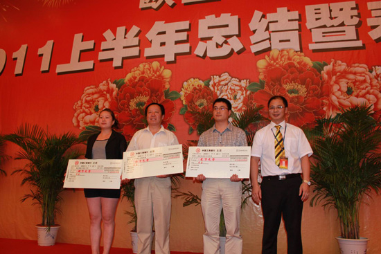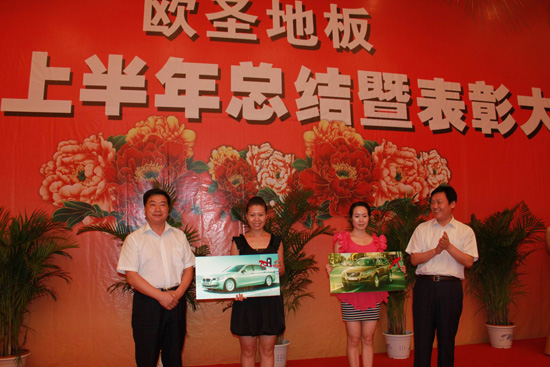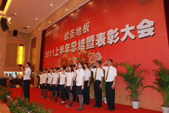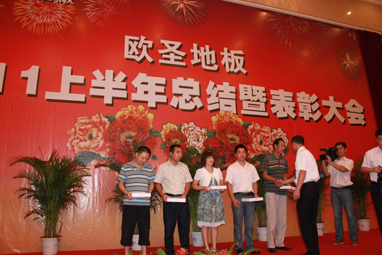7月22日晚,歐圣地板2011上半年總結暨表彰大會在今世緣大酒店盛大召開。銀海木業總裁王濤先生在會上鼓勵大家;堅定信念再接再厲,打好2011下半年的攻堅戰。歐圣地板全國經銷商的代表齊聚一堂,共同見證業績精英的風采。