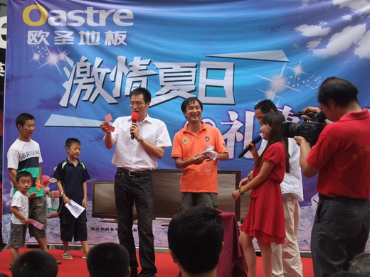歐圣地板英山專賣店在8月6日舉辦了一場“激情夏日,禮惠全城”的總裁簽售活動。總公司人員親身策劃和布置了本次活動,通過周密細致的預熱宣傳,真正做到了不漏一個小區及其各大鄉鎮。為了本次活動,我們專門請了數十位臨促人員在市區及各鄉鎮跑小區,收集客戶信息;宣傳車數輛,工作是沿街宣傳本次活動信息;電視廣告,信息平臺,小區廣告,橫幅廣告等等遍布整個英山地區。在7月份這種淡季里,搞一場大型的促銷活動是非常困難的,但是我們堅持做好各項工作,力壓競品,做到每個細節都井井有條。