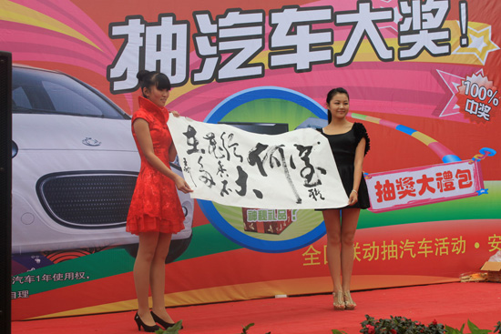 下午15:30,簽單的顧客統一拿獎券,等待著主持人喊道自己的名字,一個個期盼又帶點兒緊張的神情,讓活動現場的氣氛更是火爆。隨著大獎吉利熊貓汽車、液晶電視、洗衣機等等一個個都各有歸屬,現場氣氛達到又一高潮,消費者們都非常的高興。整個活動至此圓滿成功,站在一旁遲遲沒有下單的一些消費者,更是感慨“真的抽汽車啊!不是假的啊!早知道早點定了!唉~~~”。