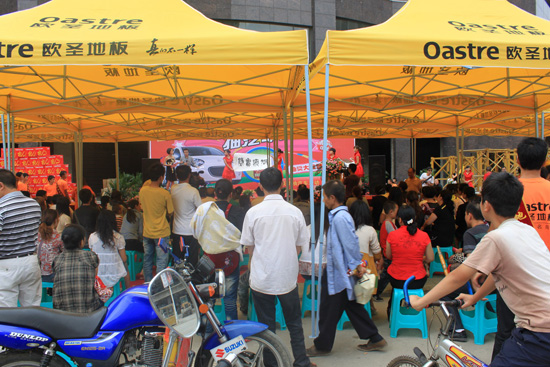 9月18日下午,貴州安順歐圣專賣店門前的廣場上人山人海,勁爆的音樂、身材火辣的漂亮模特,還有來自電視臺的著名主持人——這里正在舉行“買歐圣地板抽汽車大獎安順站”的活動現場。據了解,歐圣地板此次以“新產品發布”結合“抽汽車大獎”的形式,以全新的營銷手法推廣品牌及產品,取得了前所未有的震撼效果。