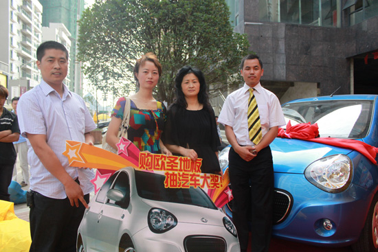 在歐圣地板的強大號召力下,活動場面空前火爆,歐圣貴州區域的經銷商也都趕來觀摩了活動整個過程,怎奈咨詢購買的消費者太多,很多經銷商朋友都幫忙做起了導購。記者在現場看到,除了能享受各種優惠條款以外,當場訂單的消費者還都獲得了精美實用的小禮品。截止活動結束時,記者獲悉,在此次抽汽車活動中,消費者現場簽單數千平方米。