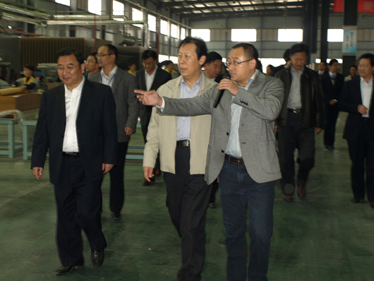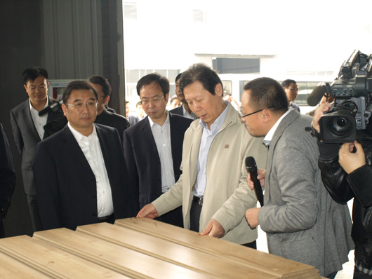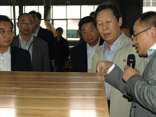 2011年11月16日江蘇省淮安市高市長、漣水縣委李書記一行參觀我蘇北生產基地。高市長、李書記一行先后視察了歐圣地板生產的各道工序,公司王總及朱總陪同領導一行,詳細了解生產以來企業各方面的運行情況。