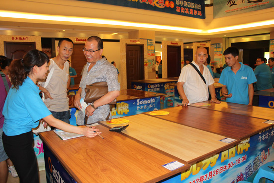 歐圣地板品牌展廳里大面積地板樣品的出色呈現(xiàn),使人身臨其境,真實(shí)觸摸到產(chǎn)品卓越的質(zhì)感,并引來了在場所有客戶的嘖嘖稱贊。為抓住總裁簽售的機(jī)遇,真情回饋西安人民,西安歐圣地板拿出“廠價直供”的巨大優(yōu)惠讓利給參加活動的客戶,還安排了現(xiàn)場訂就送、幸運(yùn)大抽獎等精彩活動,充分體現(xiàn)了歐圣地板行業(yè)領(lǐng)軍者的品牌魄力。活動現(xiàn)場,客戶絡(luò)繹不絕,搶訂景象蔚為壯觀。此次促銷活動舉得了巨大的成功,現(xiàn)場收到預(yù)定金超過百萬元,在2012年建材行業(yè)銷售并不景氣的情況下,不僅牽動著西安家居消費(fèi)市場神經(jīng),更極大地鼓舞了全國歐圣品牌經(jīng)銷商的士氣。