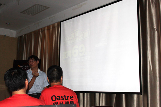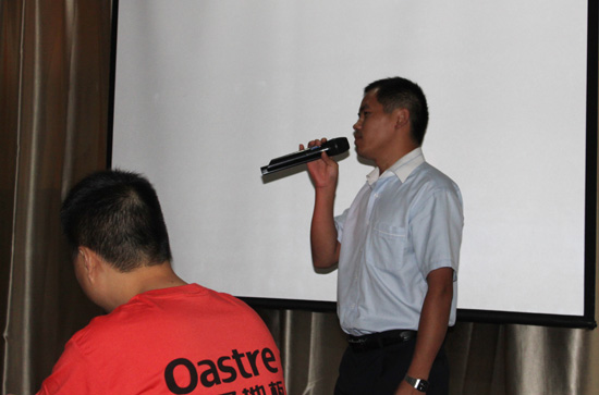 下午,作為歐圣木業優秀經銷商代表的西安區域袁總、濟南區域謝總、河南區域楊總等與大家分享交流了成功運作區域地板市場經驗。歐圣木業市場營銷總監黃水根在會上就下半年如何圍繞實木復合地板工藝的全面革新、營銷規劃作了闡述。同時,經銷商代表們還就2012上半年經營情況及下半年新形勢下的營銷規劃做了全面深入的交流與探討。