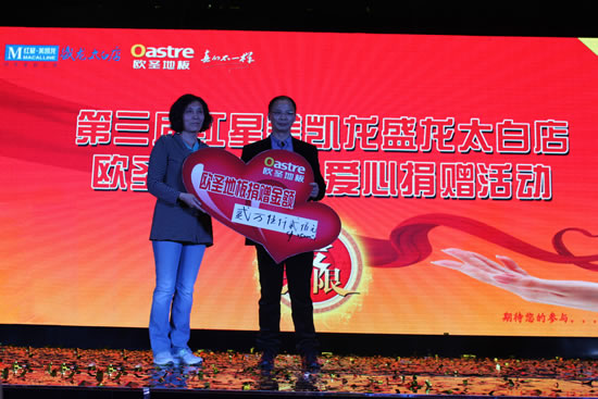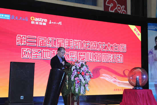 捐贈現場,歐圣木業副總裁黃水根先生及紅星美凱龍盛龍太白店副總經理劉玉霞女士上臺發言,表示歐圣木業及紅星美凱龍盛龍太白店將持續致力于公益事業,以實際行動回饋社會,回報廣大消費者的支持與鼓勵。陜西回歸兒童村的領導也代表陜西回歸兒童村的孩子們對歐圣木業攜手紅星美凱龍盛龍太白店的愛心捐贈表示萬分感謝。