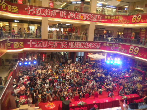 2013年9月21日,消費(fèi)者的熱情就像天氣一樣火熱,隊(duì)伍若蜿蜒長蛇,人氣爆棚!店面里也是人潮涌動(dòng),作為此次活動(dòng)第一站,陜西營銷中心在活動(dòng)開始之前也是做了充分的準(zhǔn)備!各個(gè)店面都為此次活動(dòng)傾盡全力,力爭在為歐圣周年慶典活動(dòng)中大獲全勝!無論從人員安排,店面布置到廣場(chǎng)上各類廣告等所有的一切都井井有條,也力爭為活動(dòng)創(chuàng)造最好的簽售環(huán)境及條件!