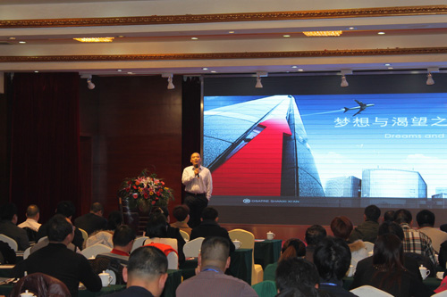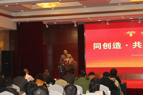 2014年1月5日-1月8日,以“同創造 共分享 齊飛揚”為主題的歐圣地板經銷商代表年會在江蘇丹陽新世紀大酒店舉行,歐圣公司總經理王瑾女士、營銷副總黃總、蘇北生產基地生產負責人朱總、實木及實木復合生產負責人吳總以及全國各地歐圣地板經銷商代表出席了此次會議。此次會議就全國的規劃、產品結構、終端建設、促銷活動之變等熱點話題深入探討,審視和謀劃歐圣地板品牌在未來發展道路上的變革與突破,共同求解未來的可持續繁榮之道。