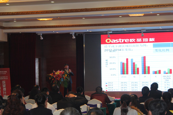 大會(huì)上銷(xiāo)售部總經(jīng)理岳成明指出,2015年是歐圣地板厚積薄發(fā)的一年,我們不僅要充分利用在實(shí)踐中積累總結(jié)的經(jīng)驗(yàn)資源,加快公司企業(yè)文化發(fā)展腳步,不僅是提高銷(xiāo)量,更是要打響高端品牌形象。