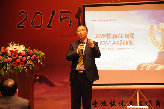精彩的風采展示后,由總公司黃總及公司總經(jīng)理袁總對本次會議做了開場致辭,對2015年歐圣地板的發(fā)展趨勢進行了分析展望。